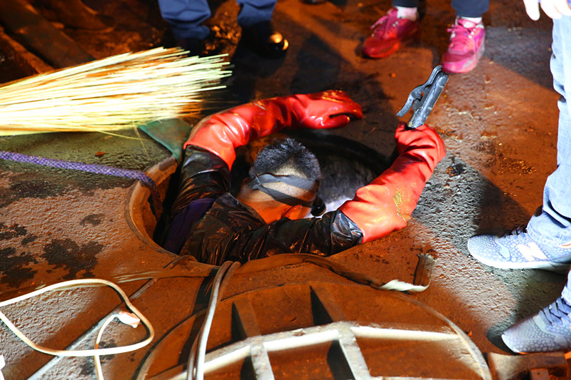 漏點冒出的水溫高達90℃,搶修人員掀起蓋板,用風扇向人井內(nèi)吹風降溫,隨后冒著被燙傷的危險進入人井中搶修,但由于伸縮器和管道都腐蝕嚴重,狹小的空間無法更換伸縮器。為了保障用戶的溫暖,用最快的速度排除故障,分公司領(lǐng)導(dǎo)決定破路開溝,擴大作業(yè)面,于是及時調(diào)來的挖掘機一直挖到凌晨4點才拓展出一個能夠滿足施工要求的空間。